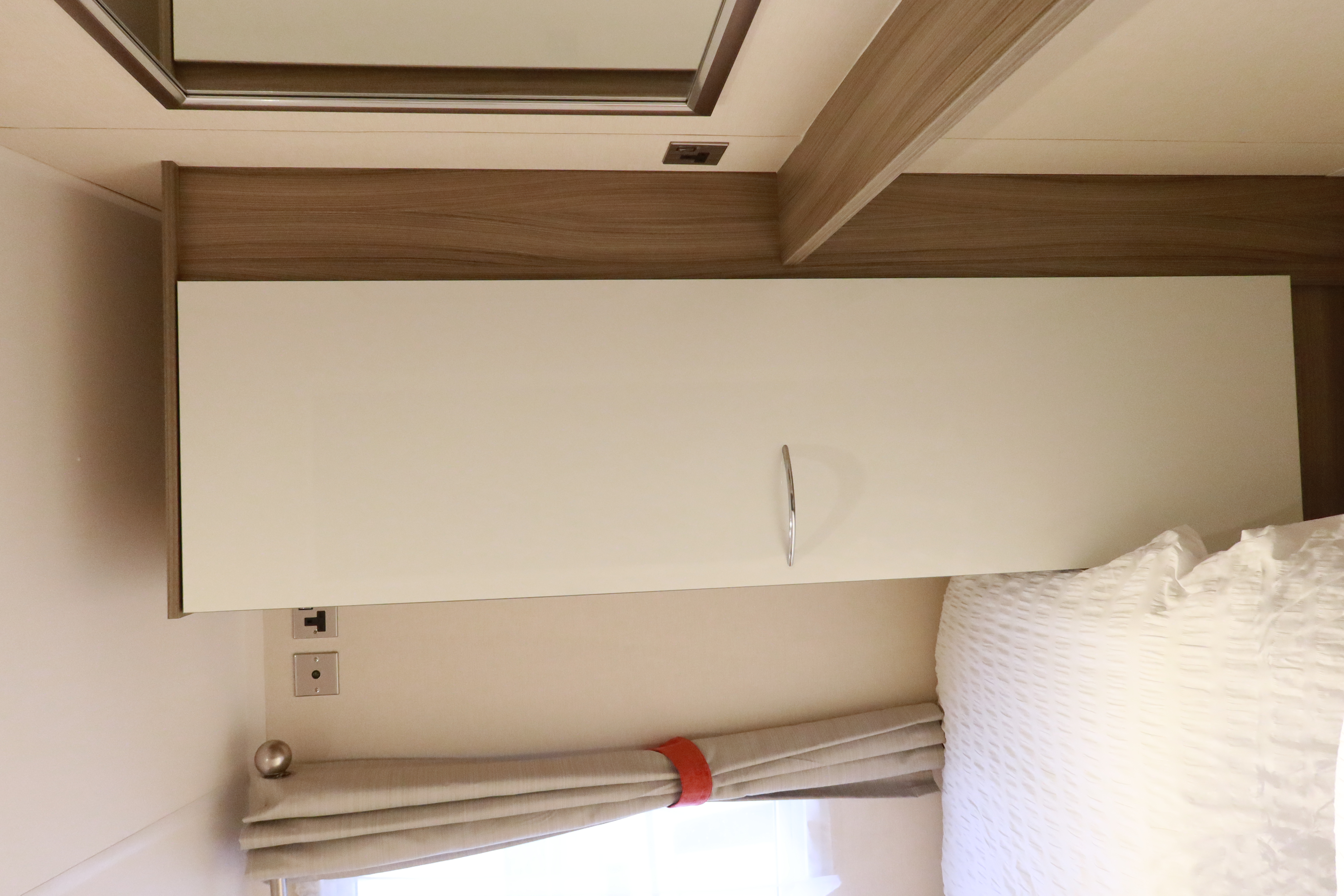 Sleeps 6 in 2 bedrooms: 1 double bed, 2 single beds, and a pull out double sofa bed. Storage is provided in the singles room and double wardrobe in the main bedroom with a dressing area and mirror. Bedding is provided.