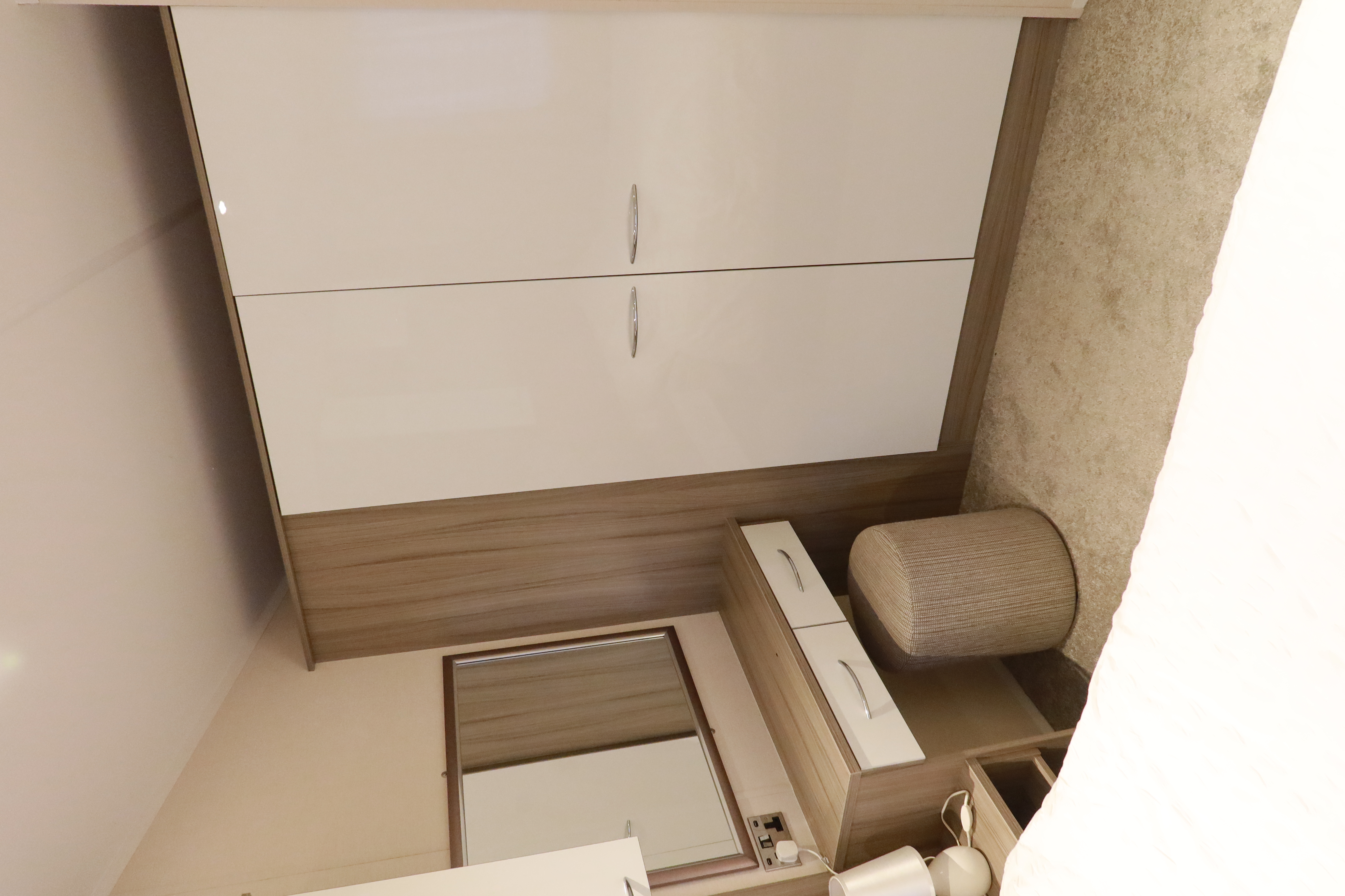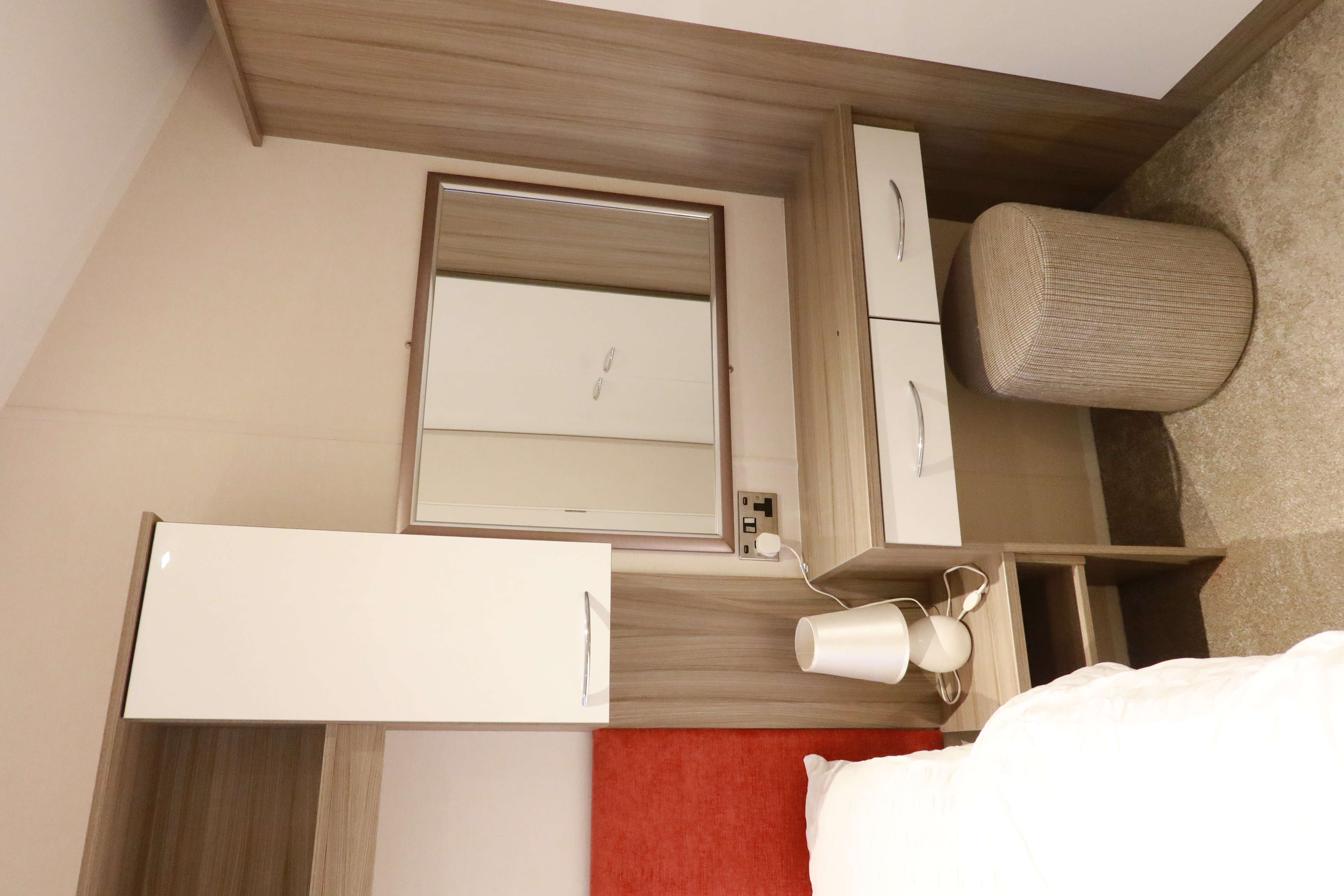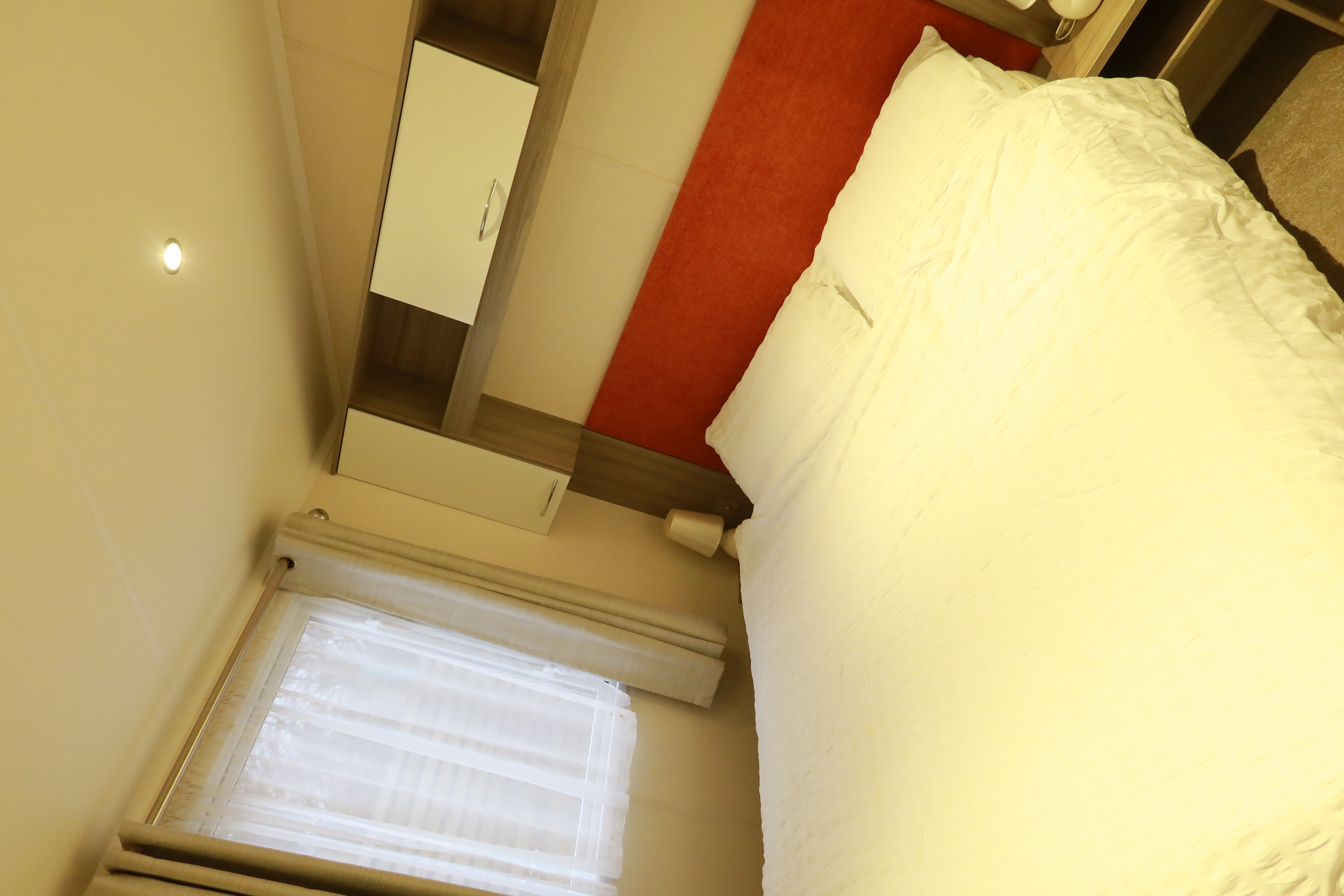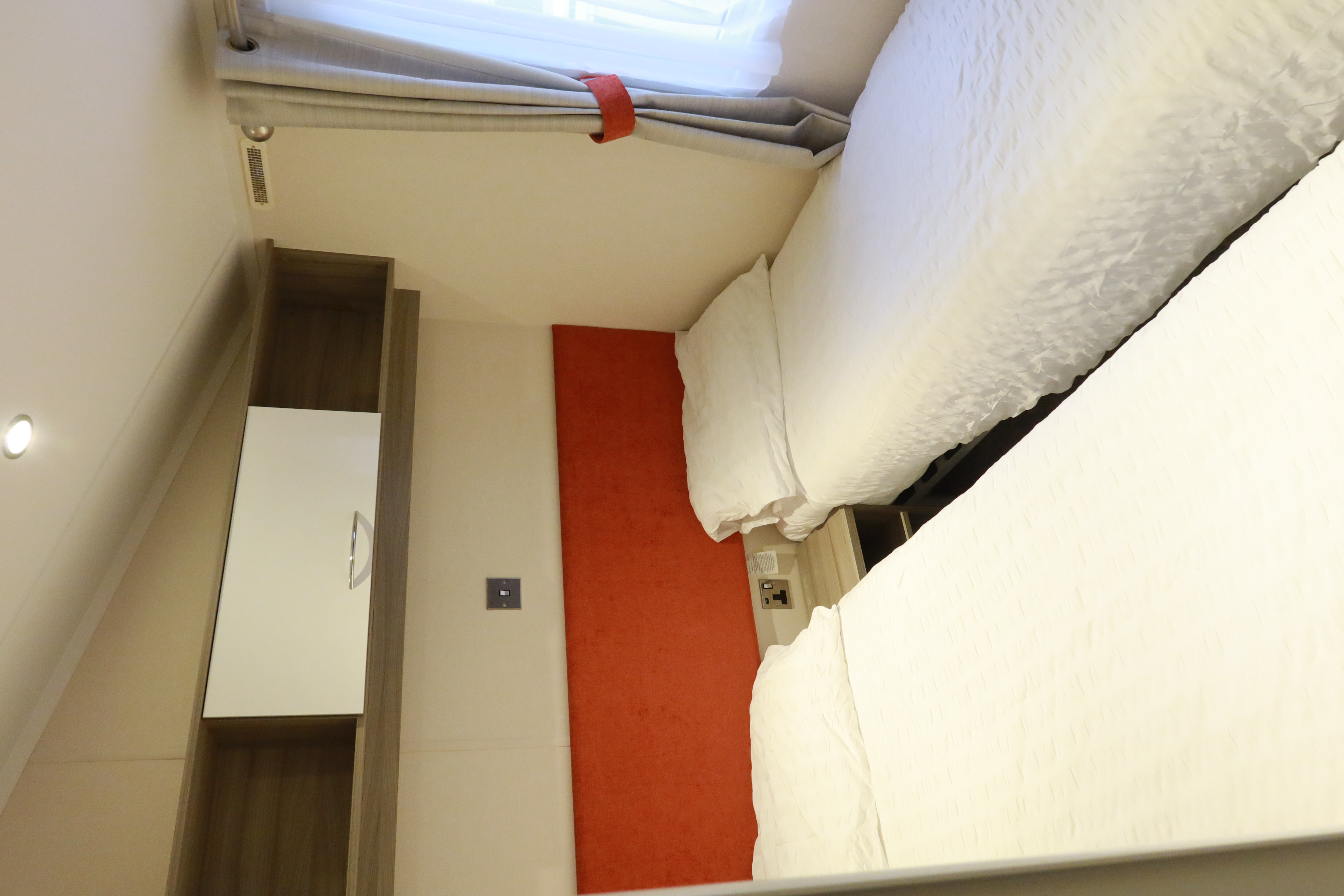 Twin bedroom with two single beds and built-in storage