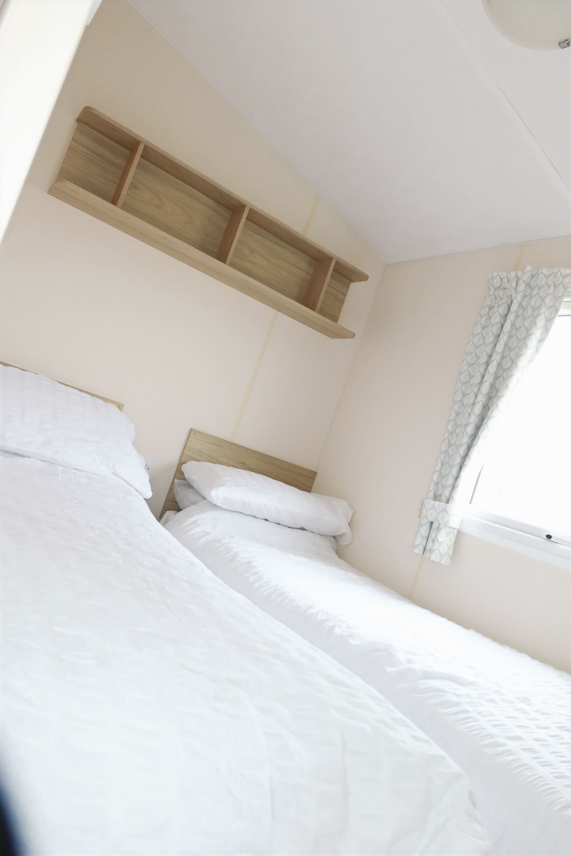 Twin bedroom with two single beds and built-in storage